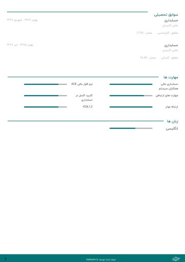 نمونه رزومه حسابداری