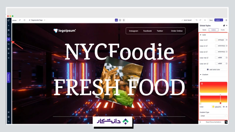 امکان ویرایش دستی رنگها و فونتها نیز از طریق منوی Global Styles فراهم است و میتوانید یک رنگ اصلی برای برند انتخاب کنید و ۲ تا ۳ رنگ مکمل نیز اضافه نمایید.