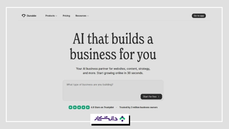 ۱. Durable؛ سریعترین ابزار طراحی سایت با AI