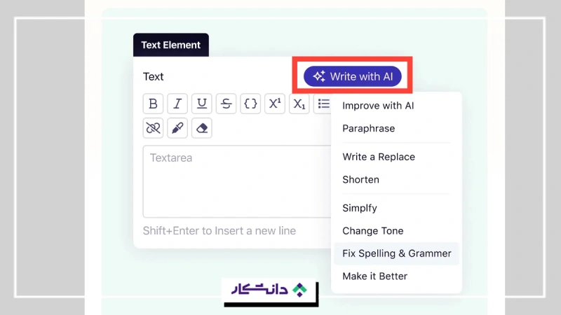 از AI Text Generator Dorik میتوانید برای تولید متنهای سایت (تیترها، توضیحات محصولات، پاراگرافها و سایر جزئیات متنی) استفاده کنید. همچنین در صورت عدم رضایت از محتوای تولید شده، امکان بازتولید آن وجود دارد.